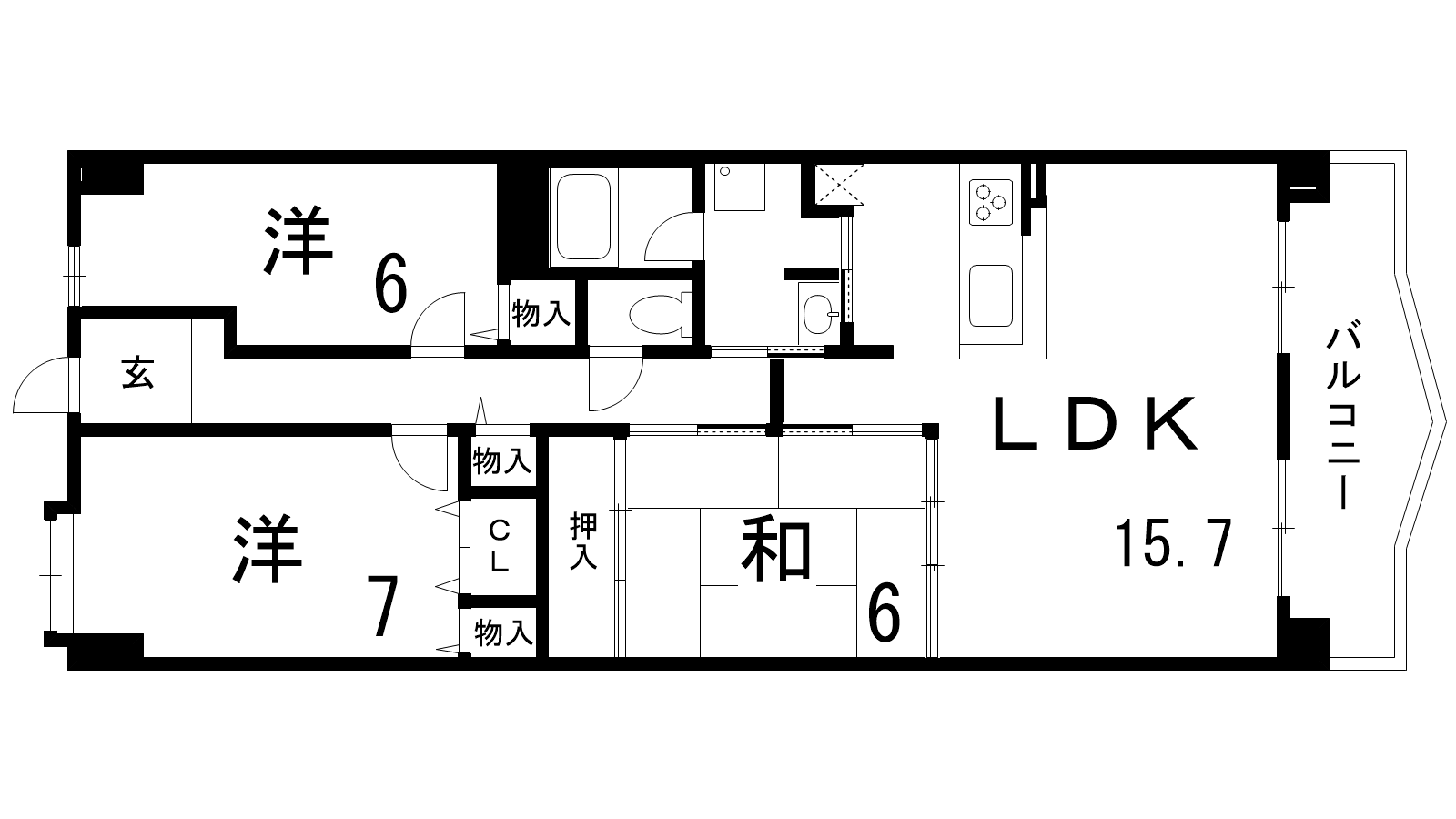 - LDK15.7帖、洋室7帖、洋室6帖、和室6帖