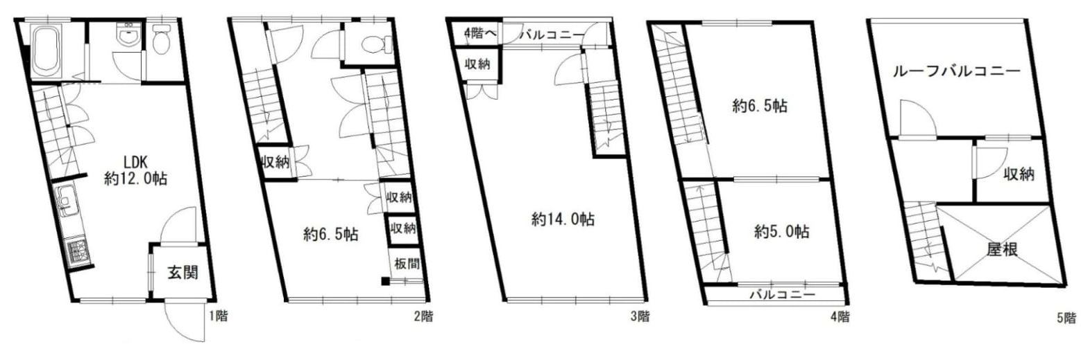 - LDK12帖、洋室6.5帖、洋室14帖、洋室6.5帖、洋室5帖