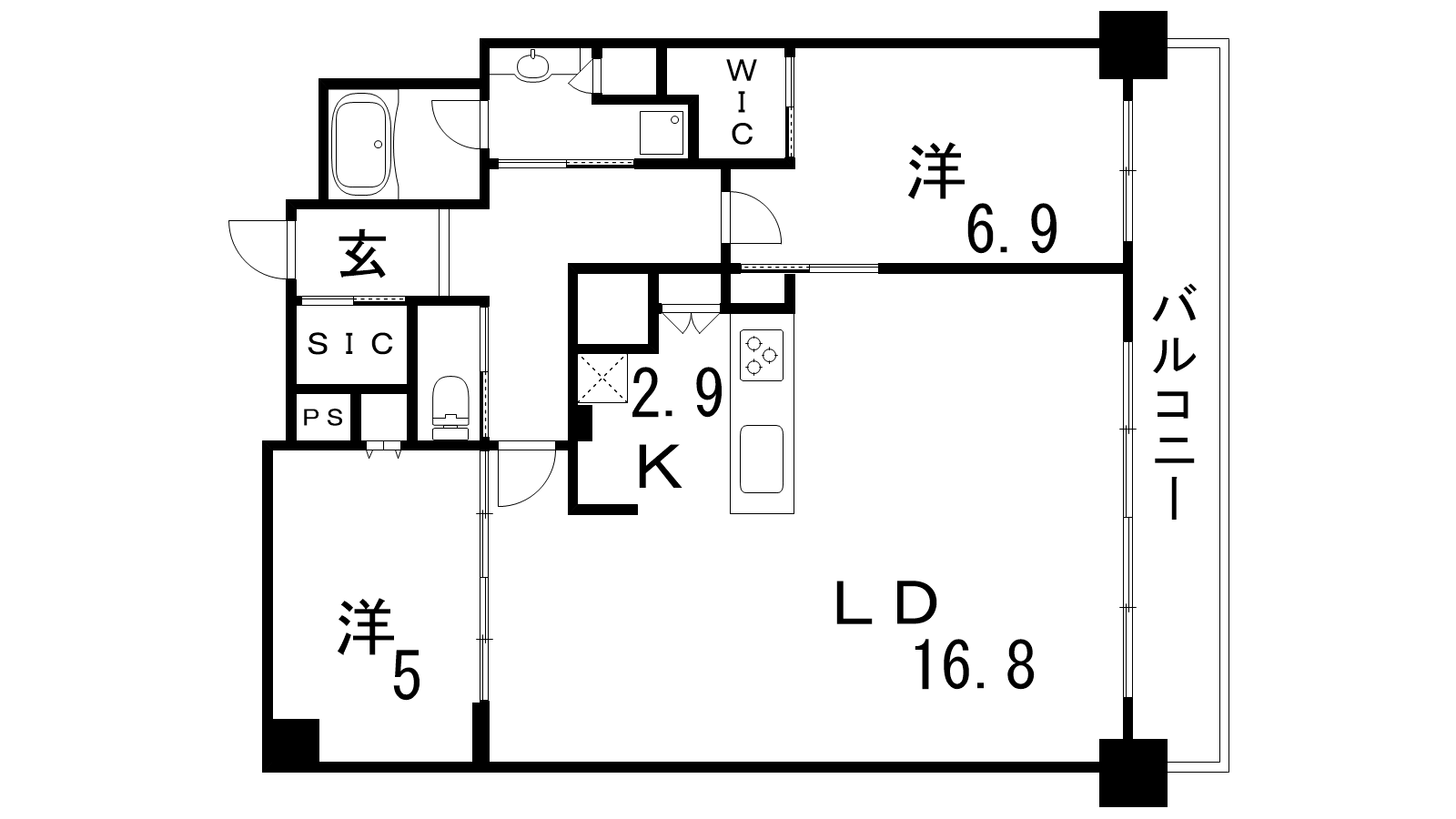 - LDK19.7帖、洋室6.9帖、洋室5帖