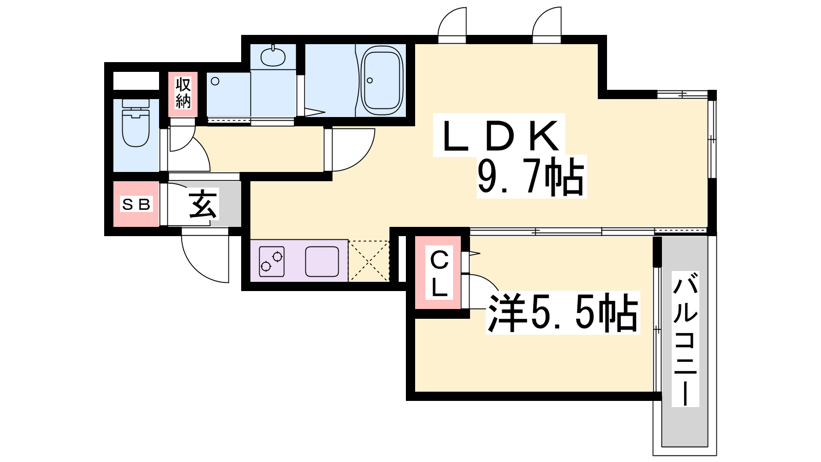 - LDK9.7帖、洋室5.5帖