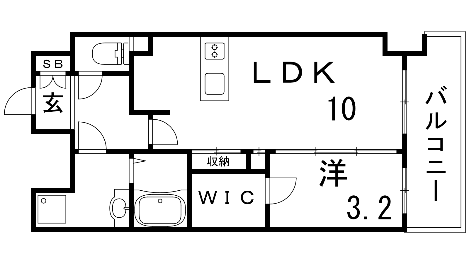 - LDK10帖、洋室3.2帖