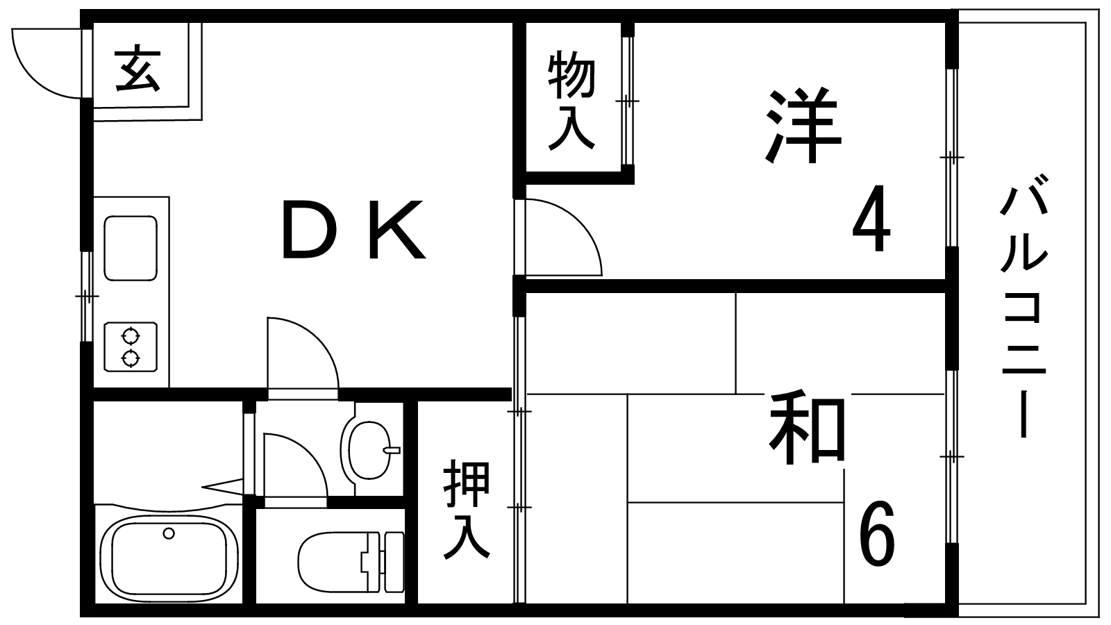 - DK7.5帖、洋室4帖、和室6帖