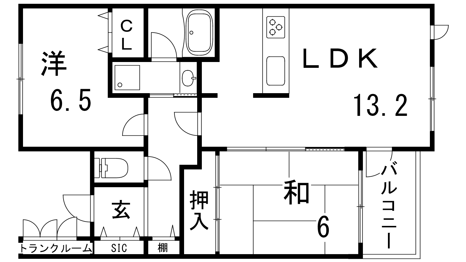- LDK13.2帖、洋室6.5帖、和室6帖