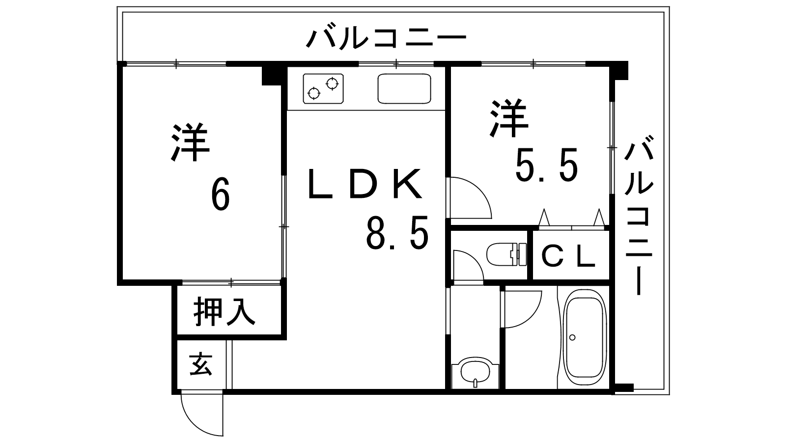 - LDK8.5帖、洋室6帖、洋室5.5帖