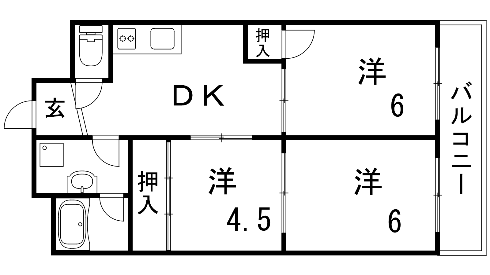 - DK6帖、洋室6帖、洋室6帖、洋室3帖