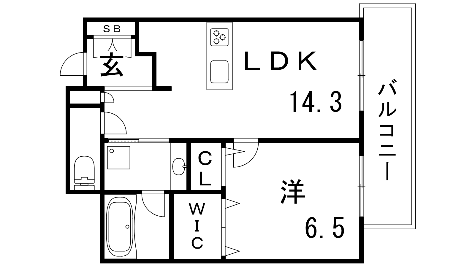 - LDK14.3帖、洋室6.5帖