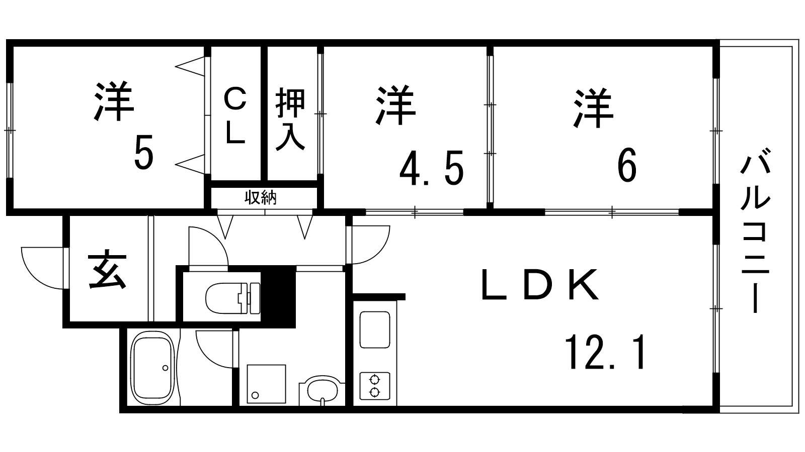 - LDK12.1帖、洋室6帖、洋室4.5帖、洋室5帖