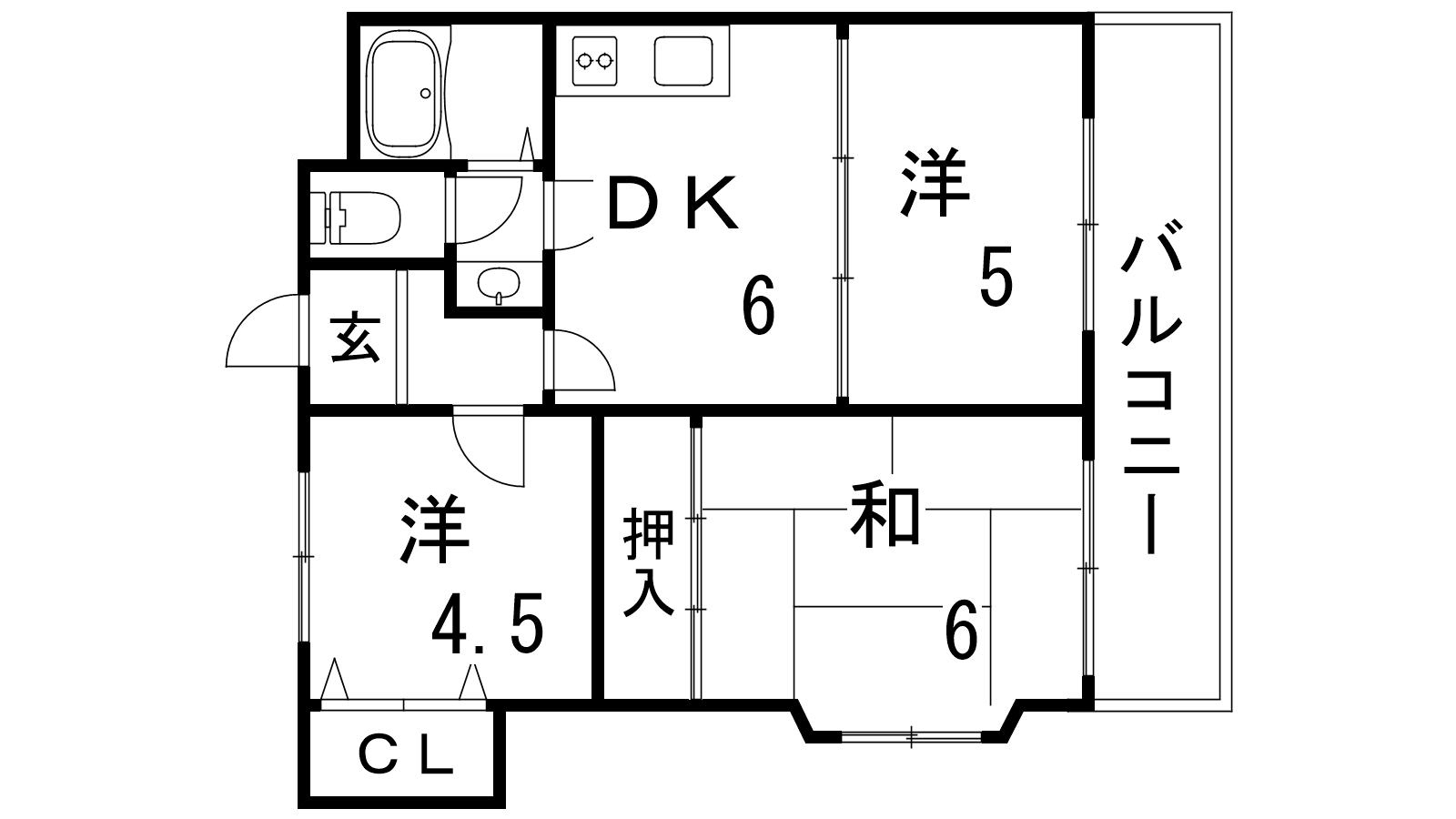 - DK6帖、和室6帖、洋室5帖、洋室4.5帖