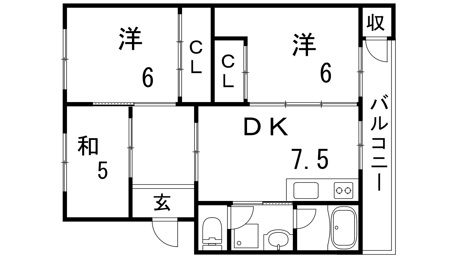- DK7.5帖、洋室6帖、洋室6帖、和室5帖