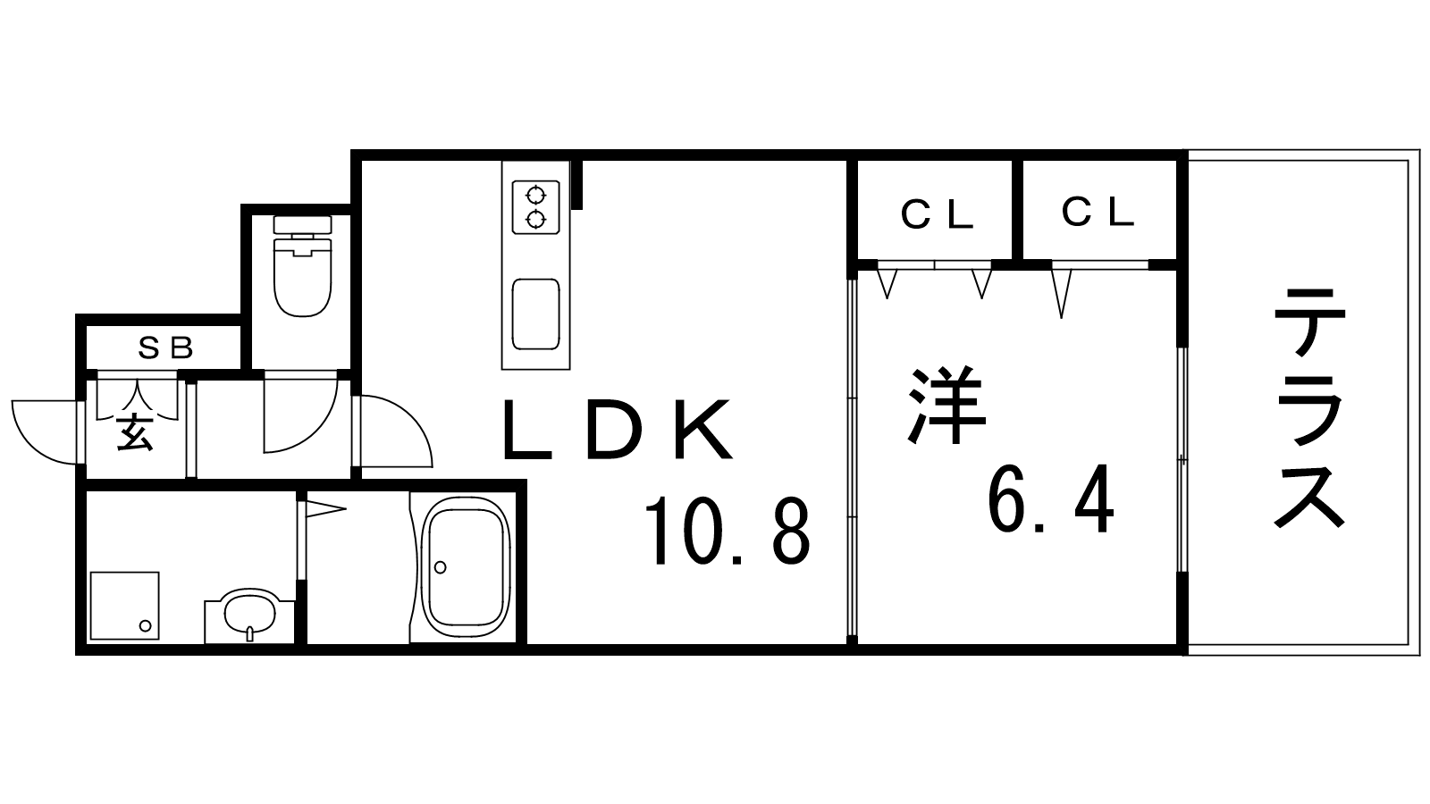 - LDK10.8帖、洋室6.4帖