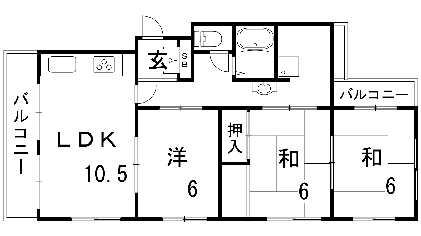 - 洋室6帖、LDK10.5帖、和室6帖、和室6帖