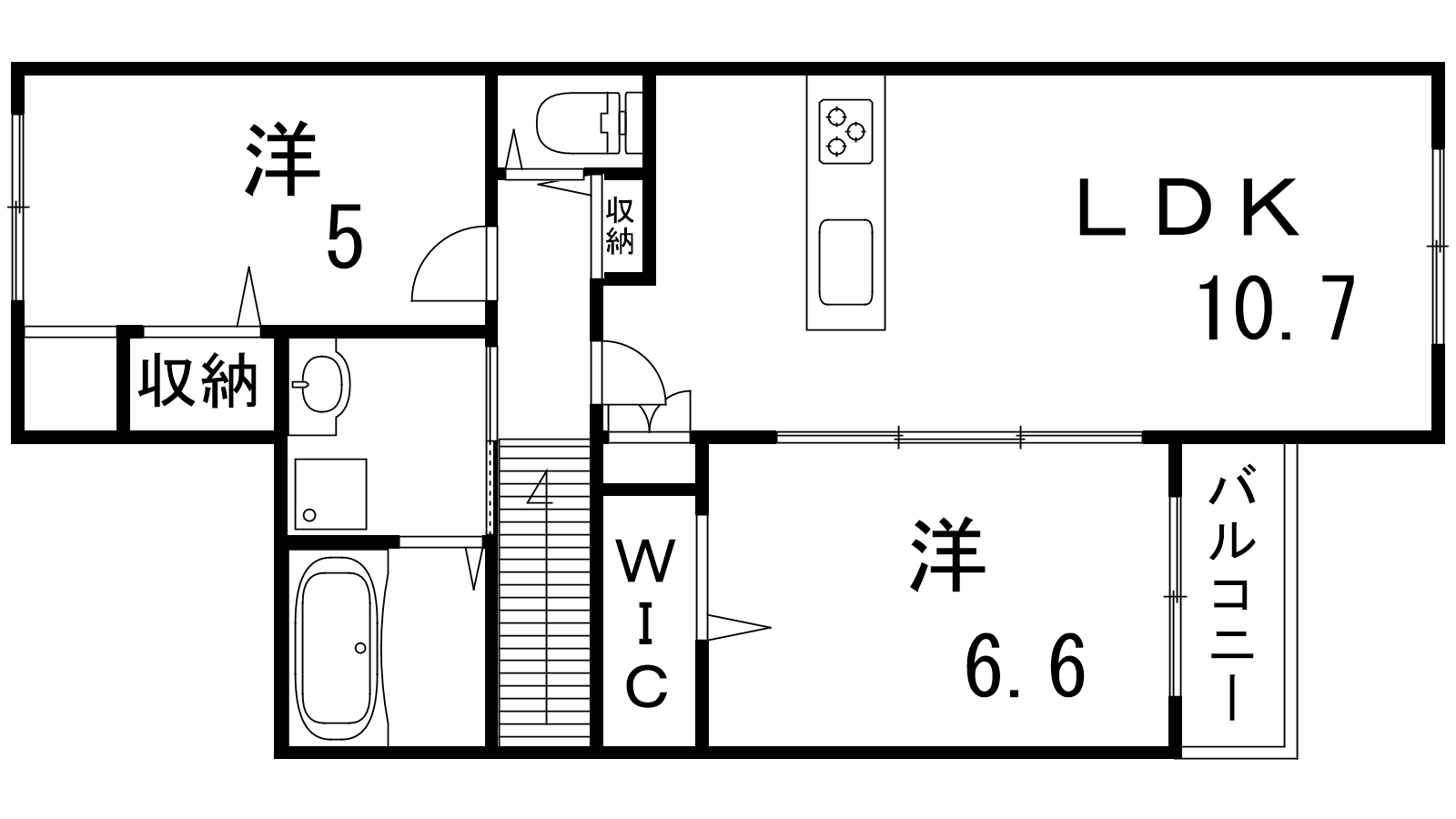 - LDK10.7帖、洋室6.6帖、洋室5帖