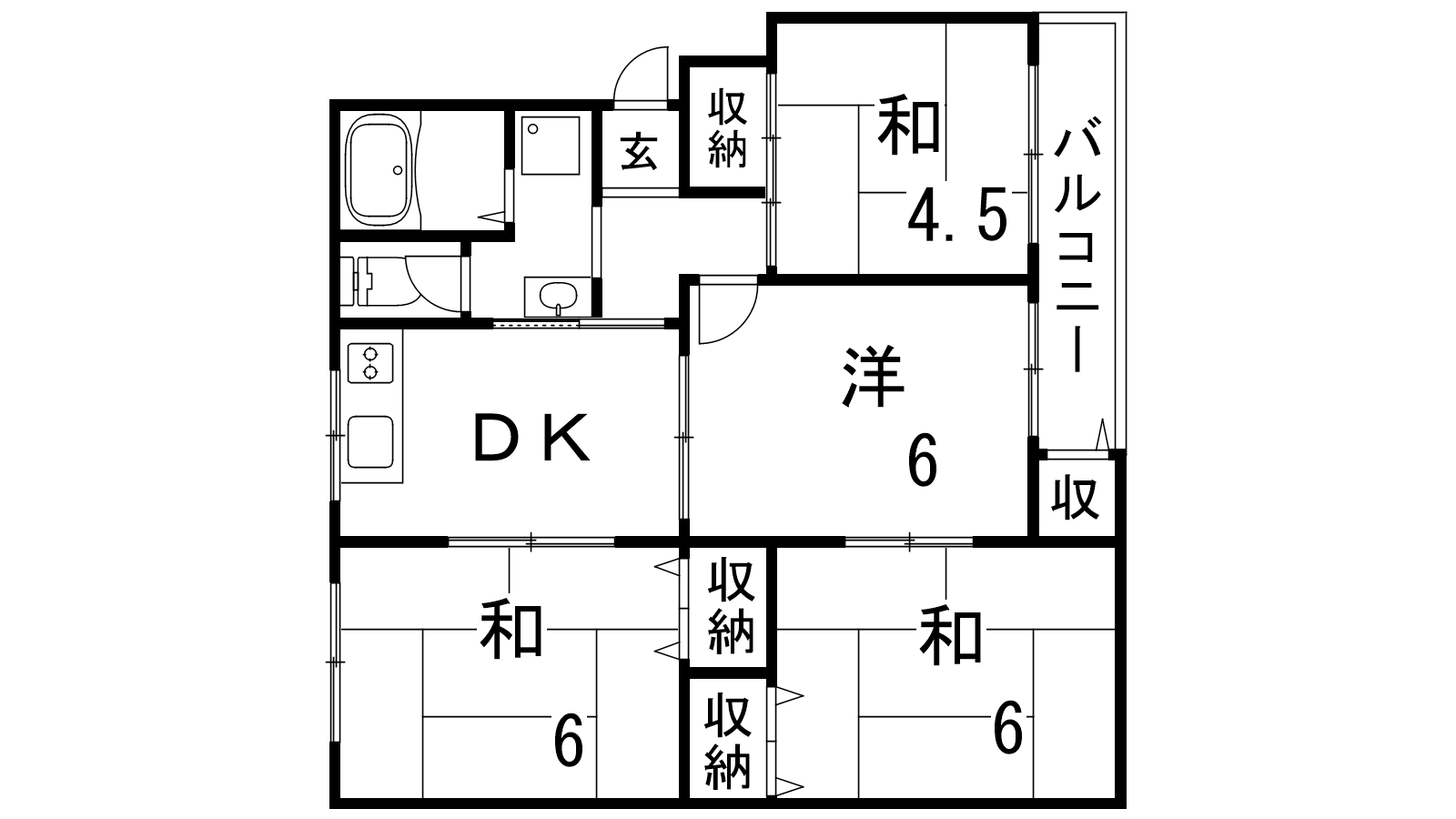 - DK5帖、和室6帖、和室6帖、洋室6帖、和室4.5帖