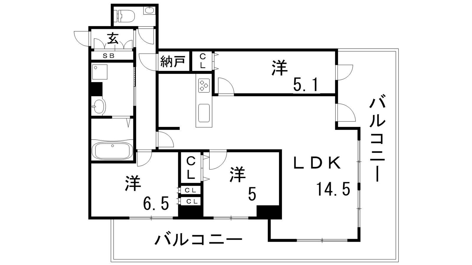 - LDK14.5帖、洋室5帖、洋室5.1帖、洋室6.5帖