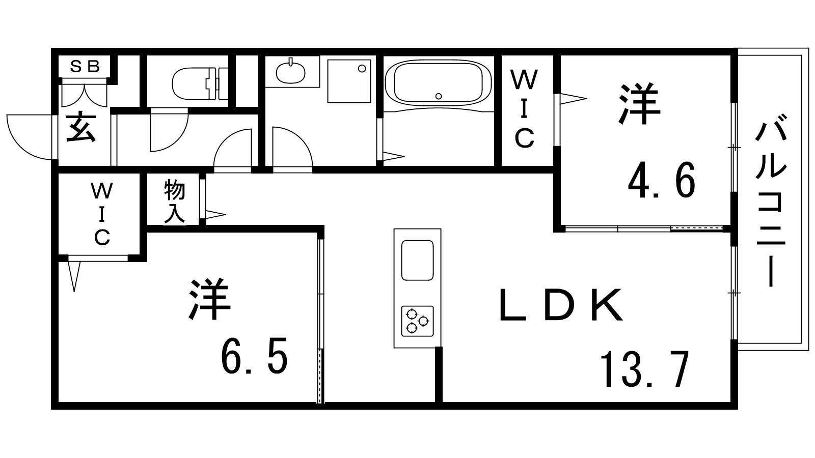 - LDK13.7帖、洋室6.5帖、洋室4.6帖