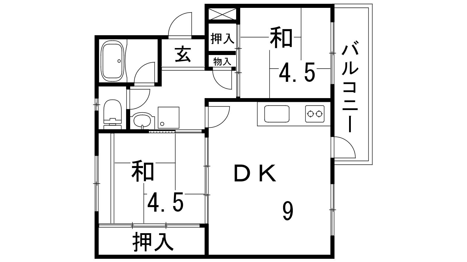 - DK9帖、和室4.5帖、和室4.5帖