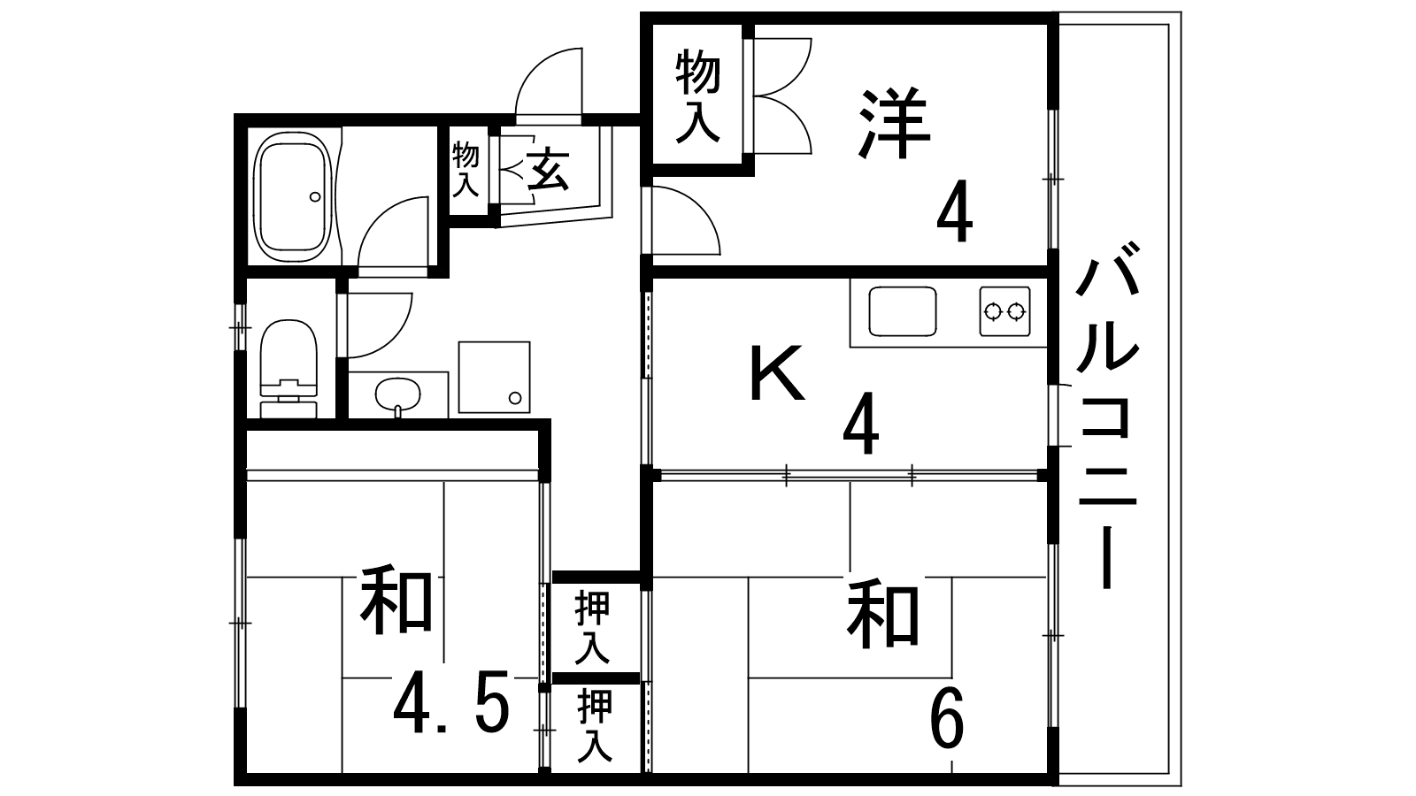 - K4帖、和室6帖、和室4.5帖、洋室4帖