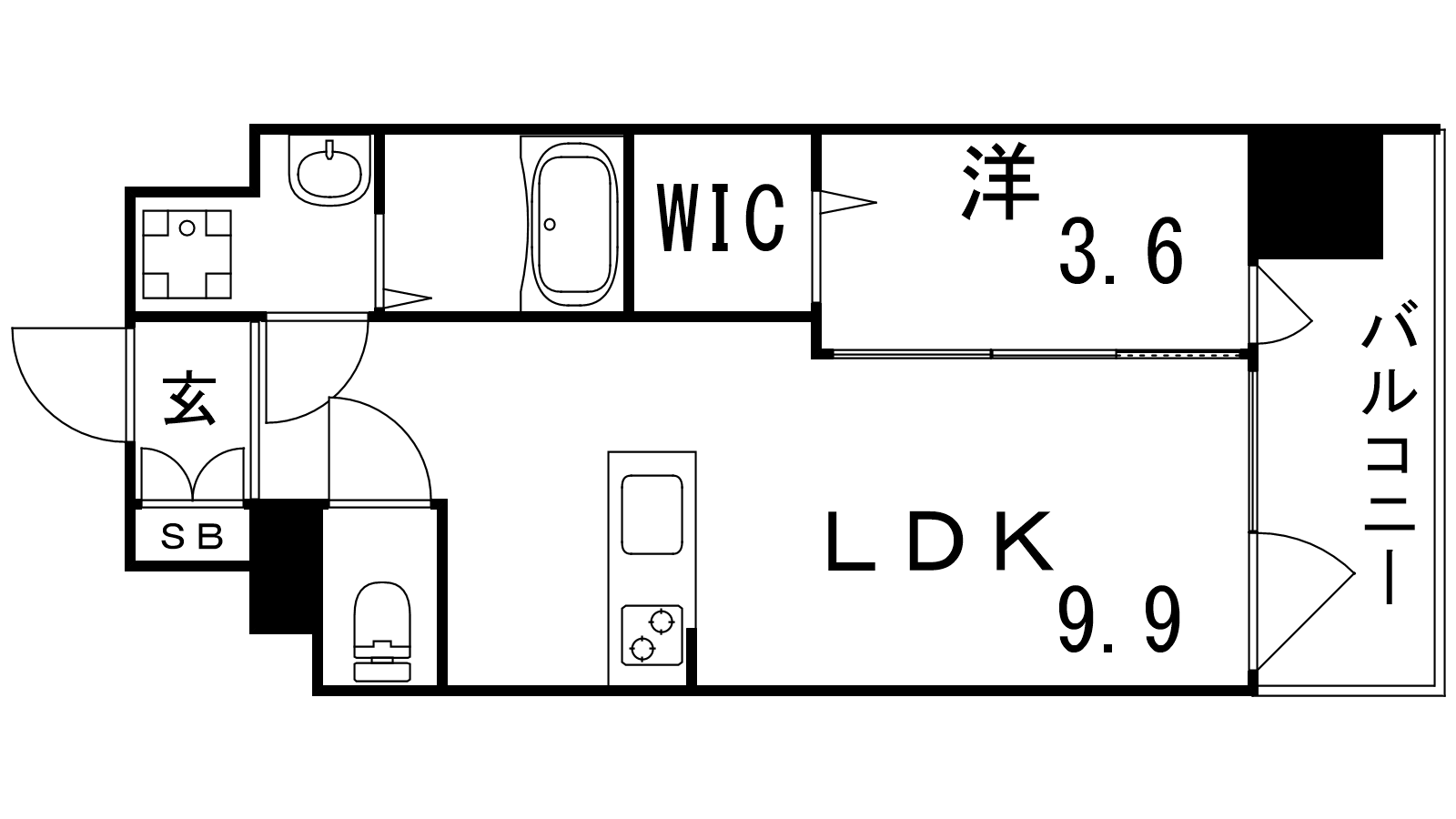 - 洋室3.6帖、LDK9.9帖