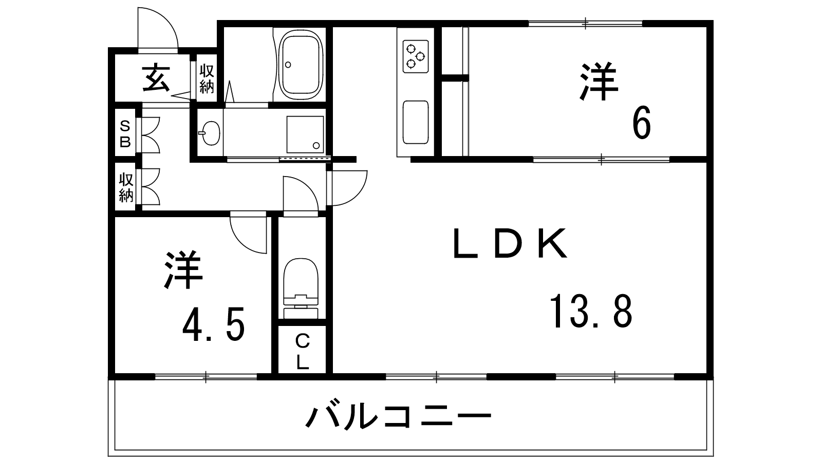 - LDK13.8帖、洋室6帖、洋室4.5帖