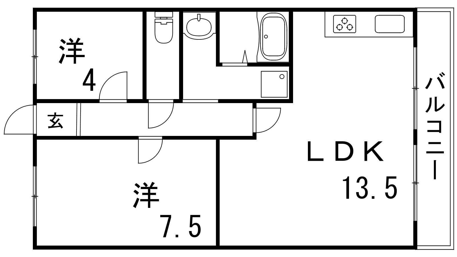 - LDK13.5帖、洋室7.5帖、洋室4帖