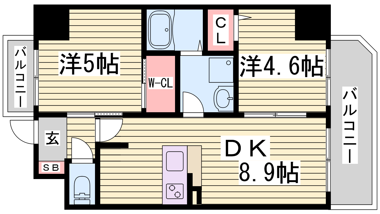 - DK8.9帖、洋室5帖、洋室4.6帖