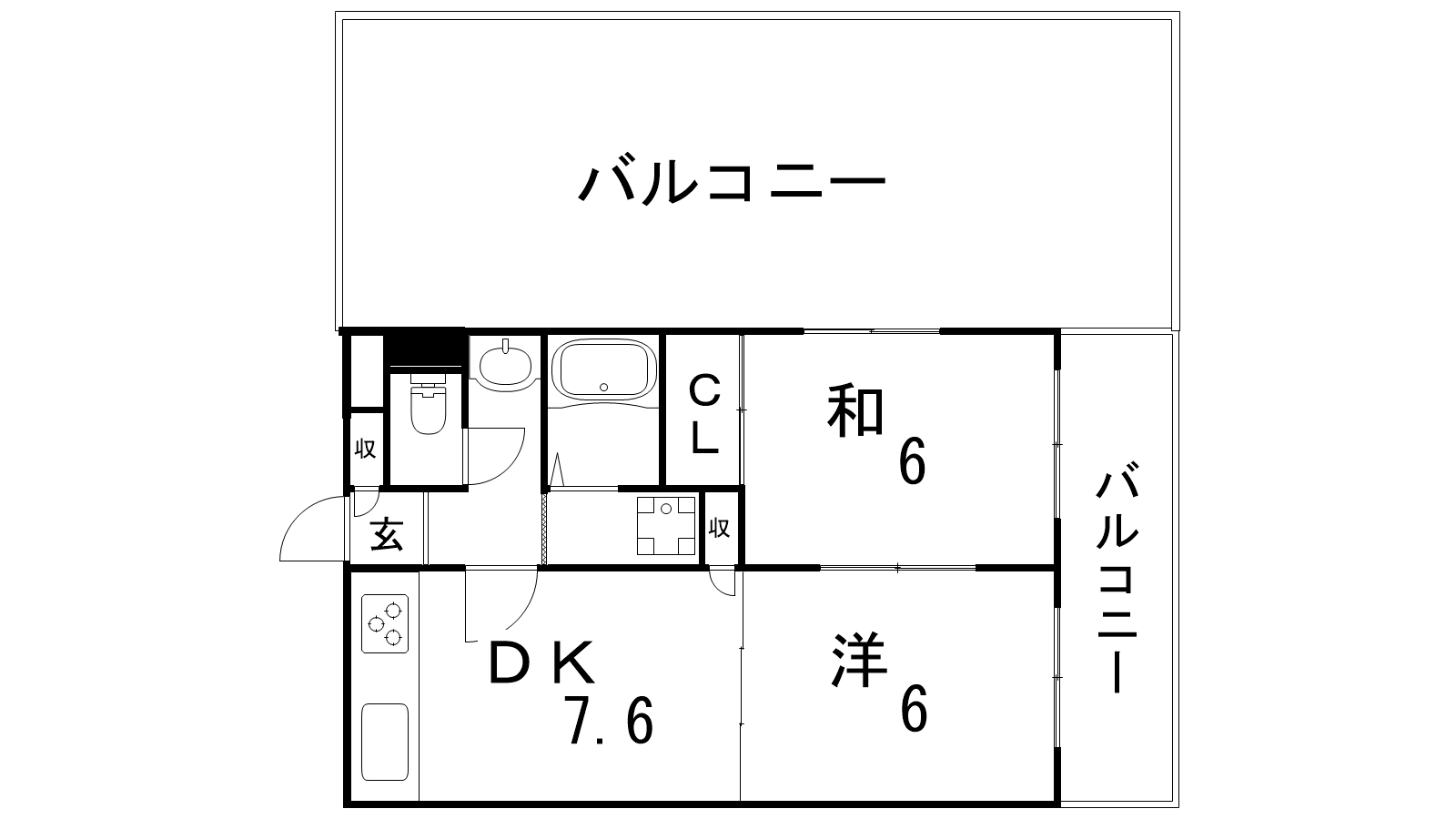 - DK7.6帖、洋室6帖、和室6帖