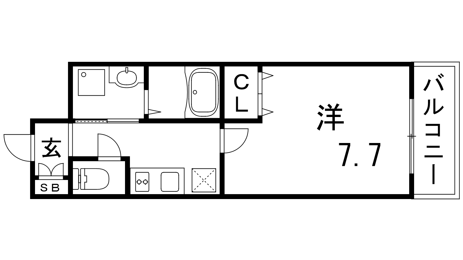 - K2帖、洋室7.7帖