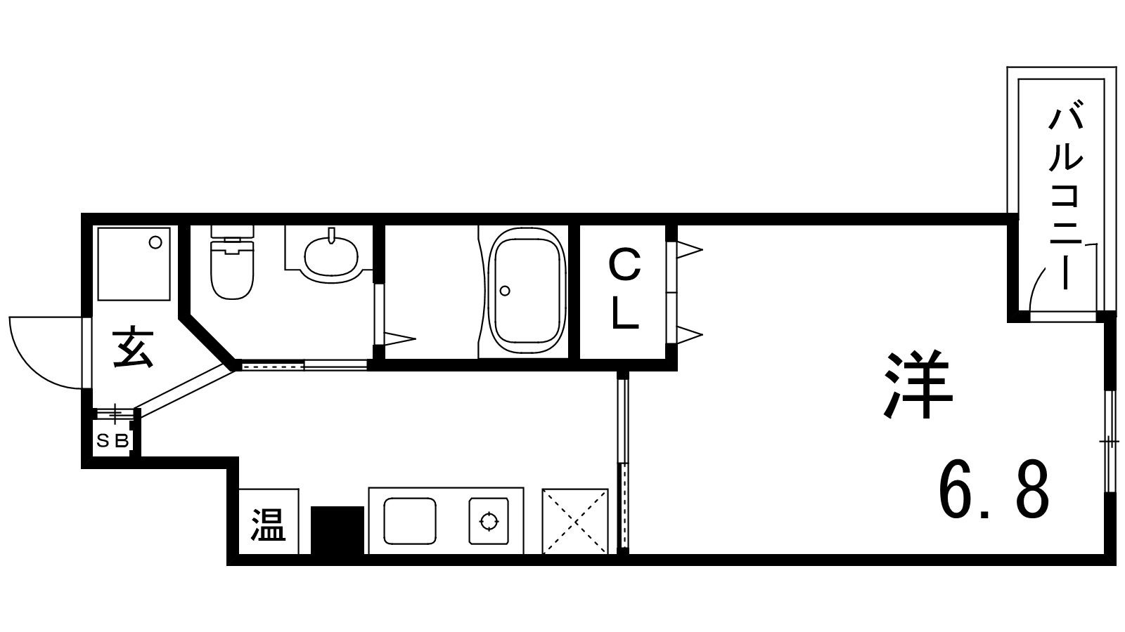 - K2帖、洋室6.8帖