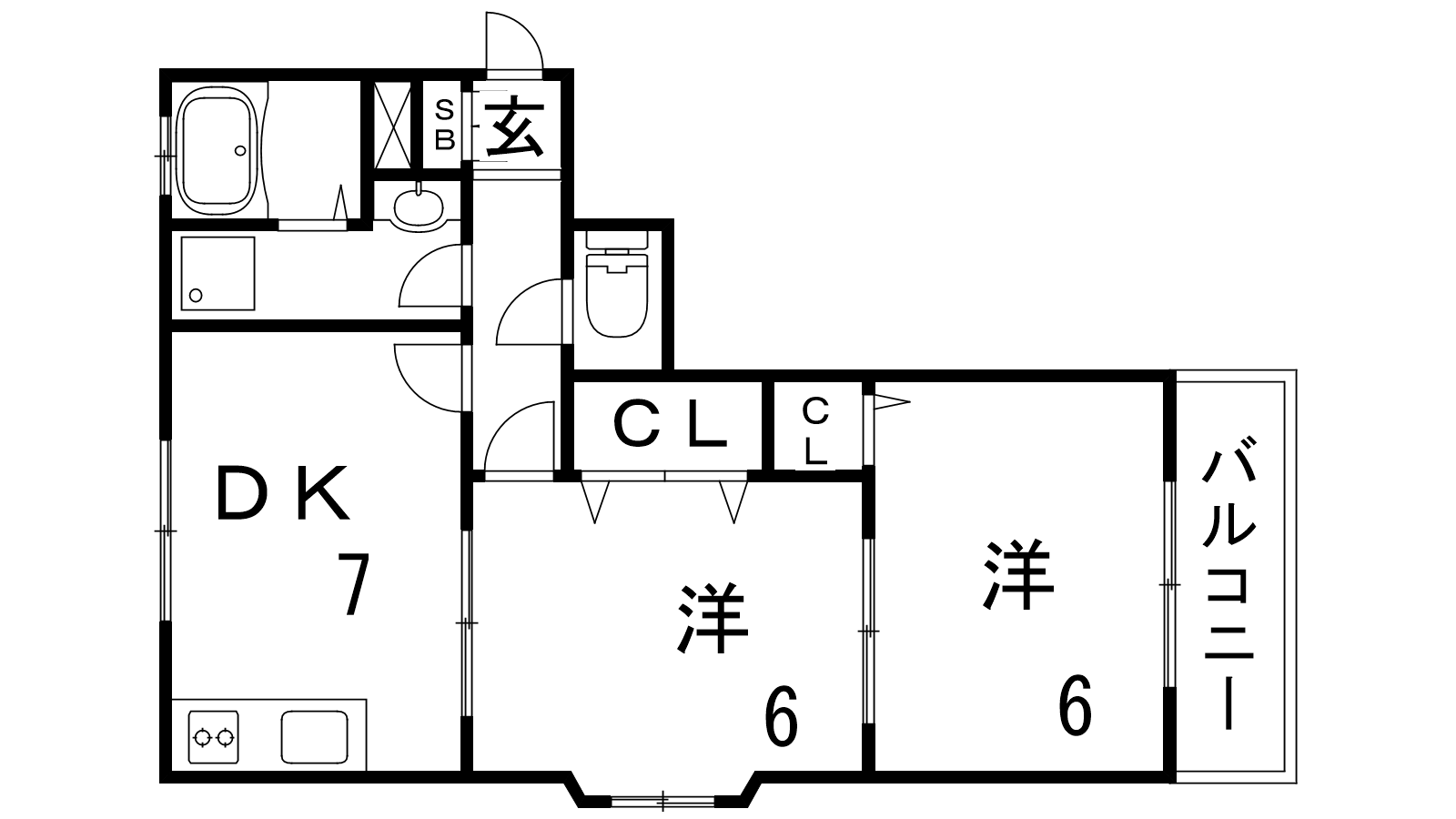 - DK7帖、洋室6帖、洋室6帖