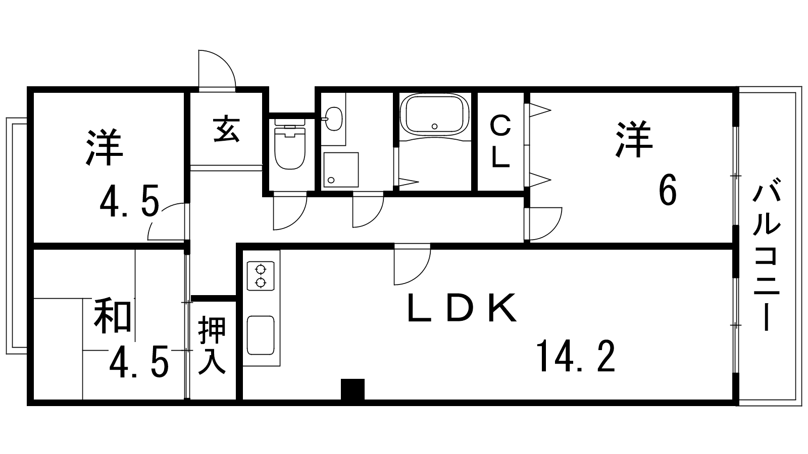 - LDK14.2帖、洋室6帖、和室4.5帖、洋室4.5帖