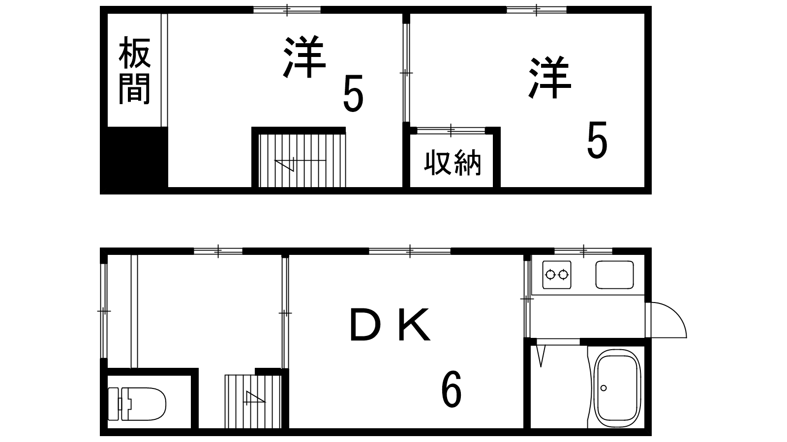 - DK6帖、洋室5帖、洋室5帖