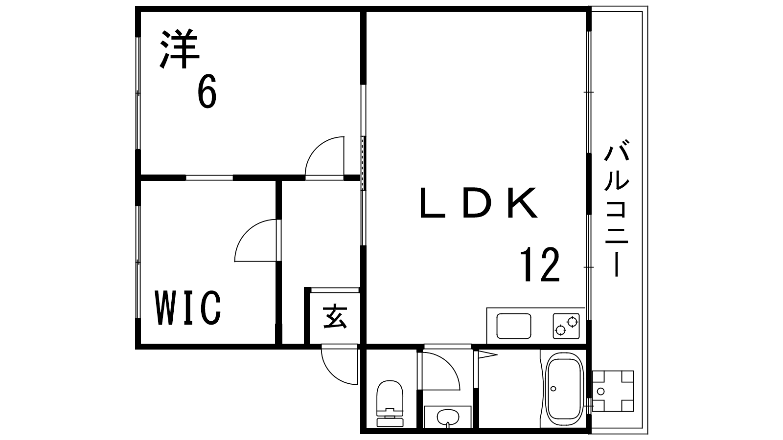 - LDK12帖、洋室6帖、S4帖