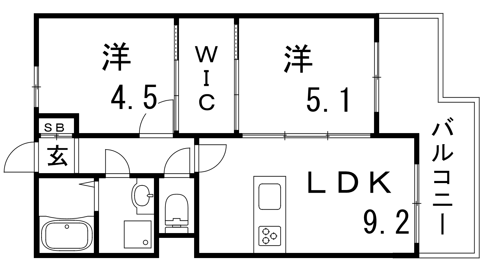 - LDK9.2帖、洋室5.1帖、洋室4.5帖