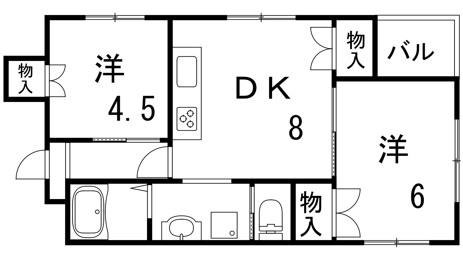 会下山小学校区!リノベーション物件!使いやすい振り分けタイプの2DK!