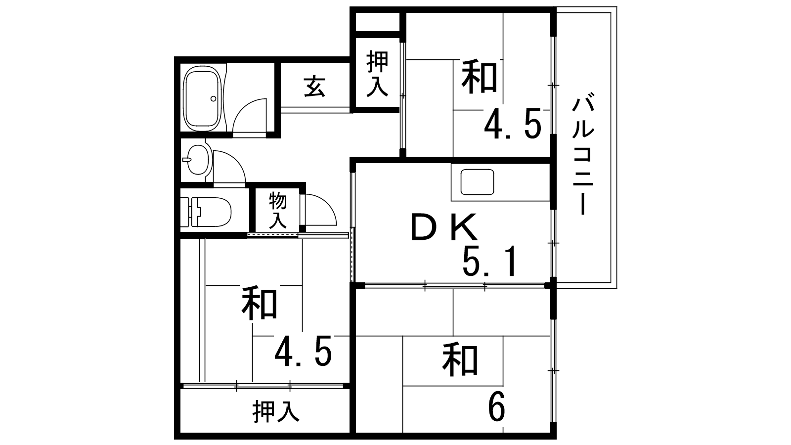 - DK5.1帖、和室4.5帖、和室4.5帖、和室6帖