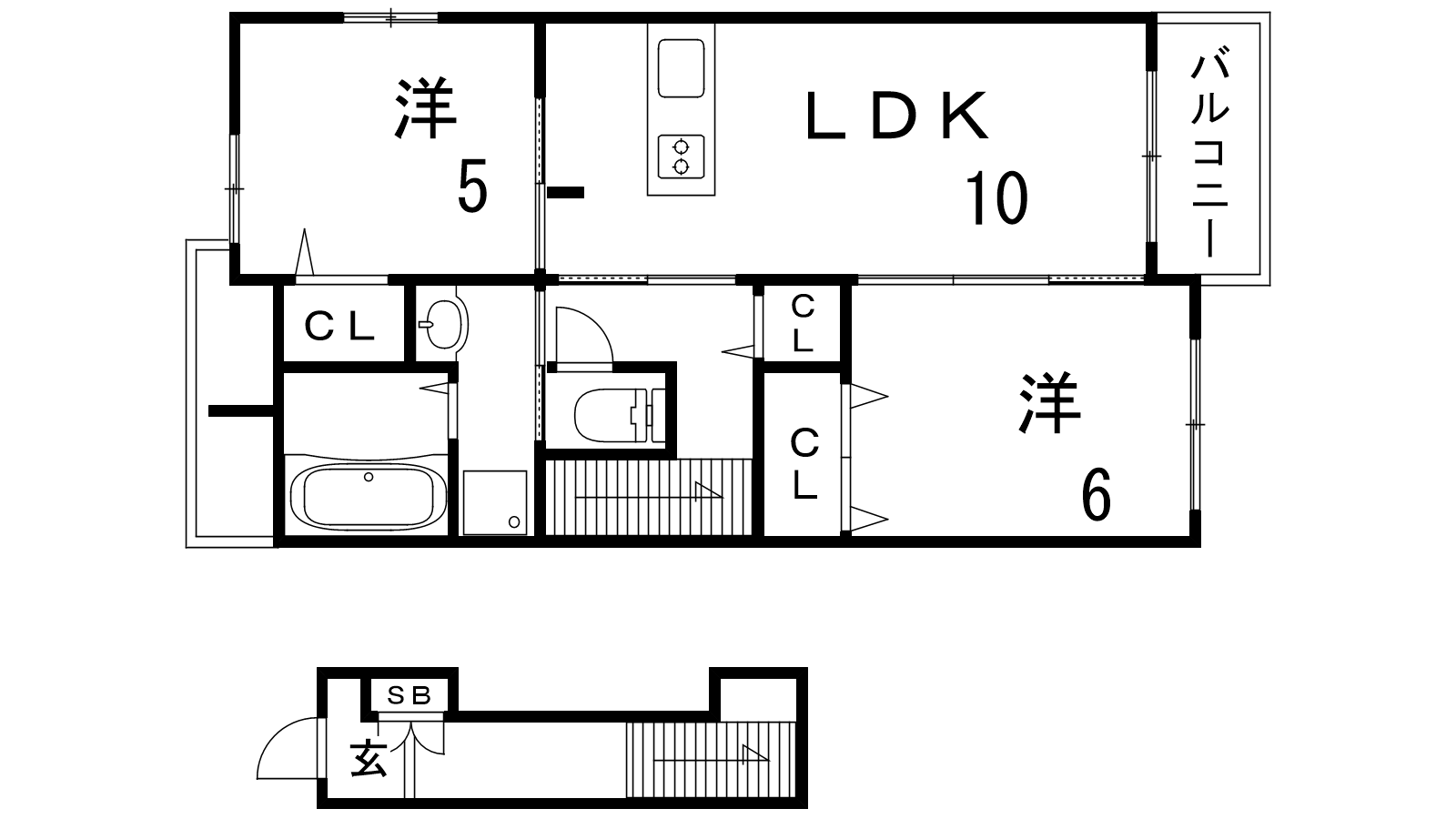 - LDK10帖、洋室6帖、洋室5帖