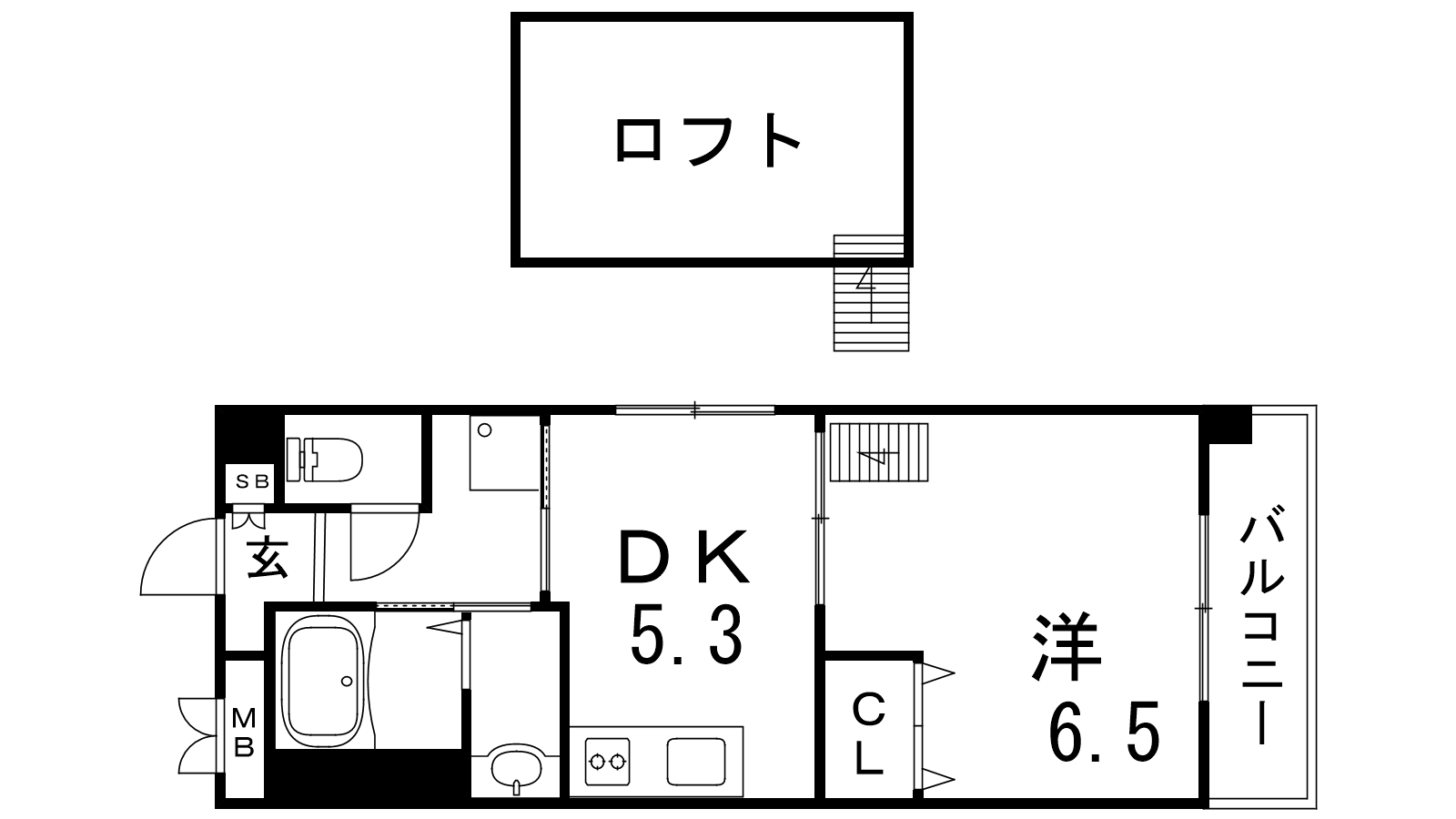 - DK5.3帖、洋室6.5帖