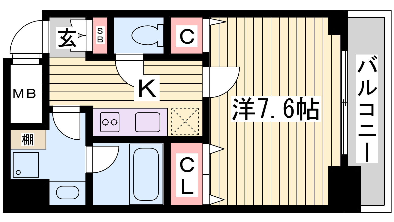 - K2.5帖、洋室7.6帖