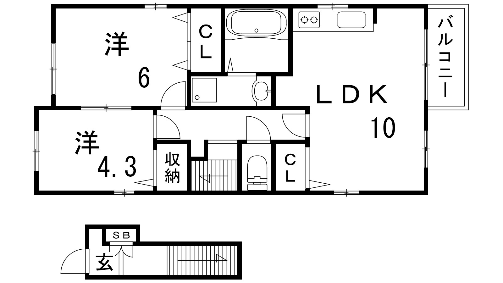 - LDK10帖、洋室6帖、洋室4.3帖