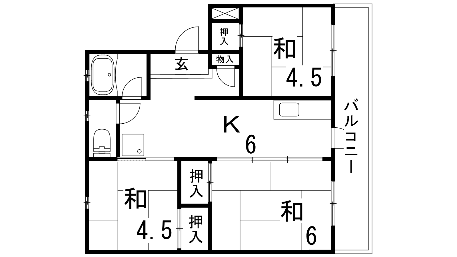 - K6帖、和室6帖、和室4.5帖、和室4.5帖
