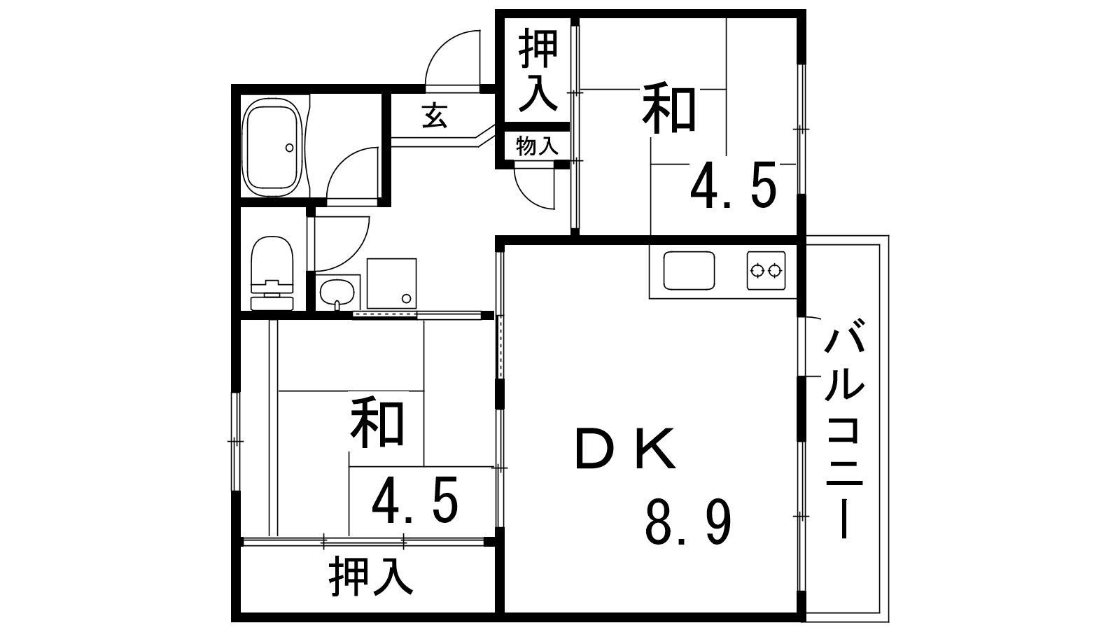 - DK8.9帖、和室4.5帖、和室4.5帖