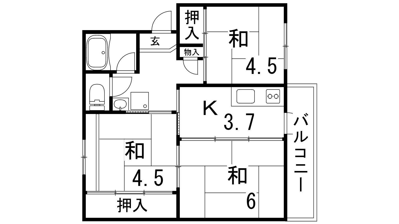 - K3.7帖、和室6帖、和室4.5帖、和室4.5帖
