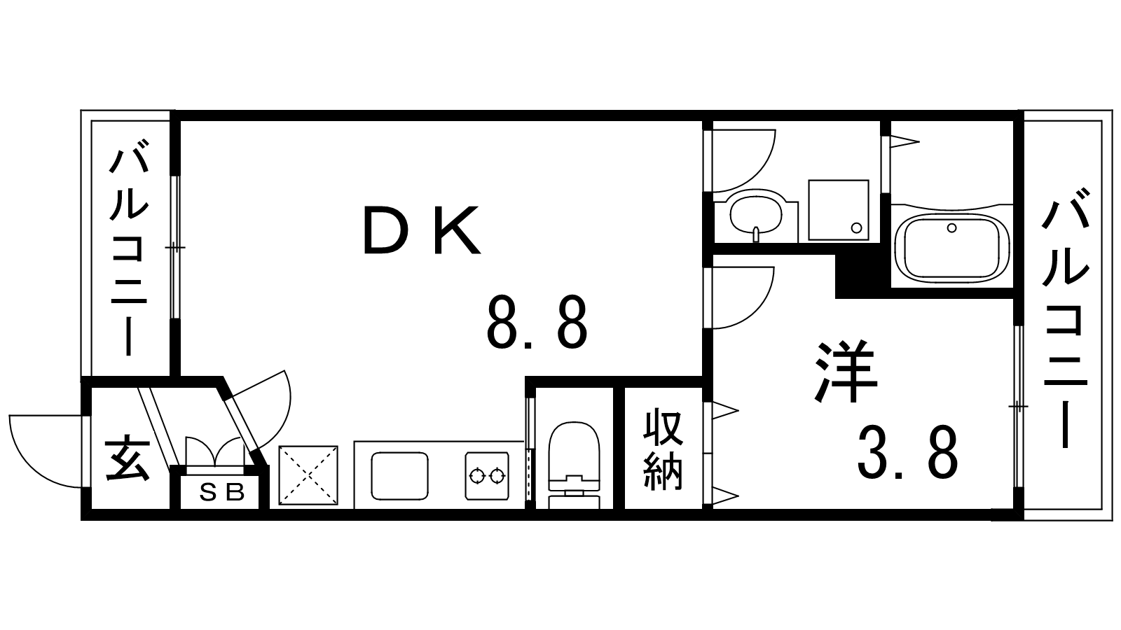 - 洋室3.8帖、DK8.8帖