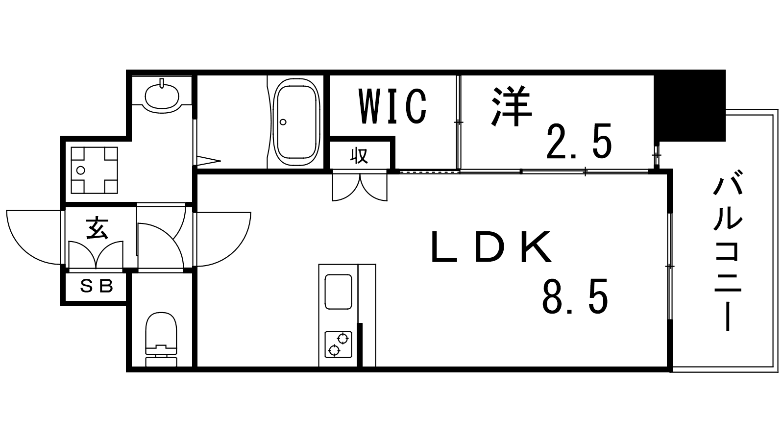 - 洋室2.5帖、DK8.5帖