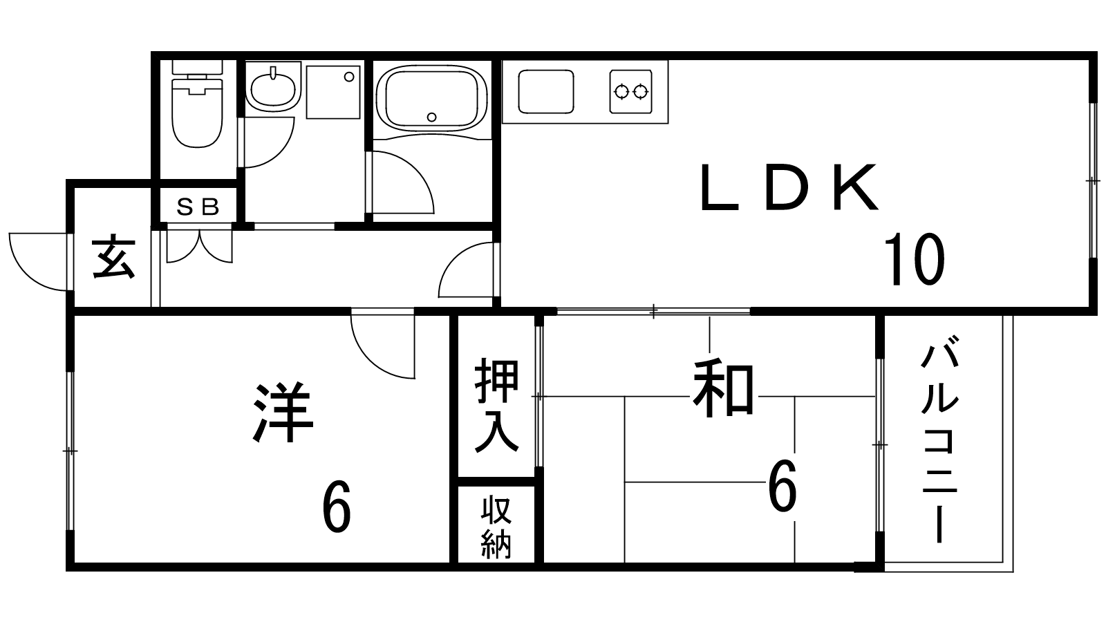 - LDK10帖、洋室6帖、和室6帖