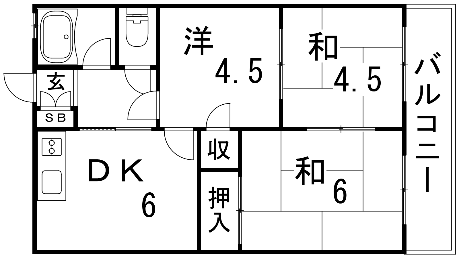 - DK6帖、洋室4.5帖、和室4.5帖、和室6帖