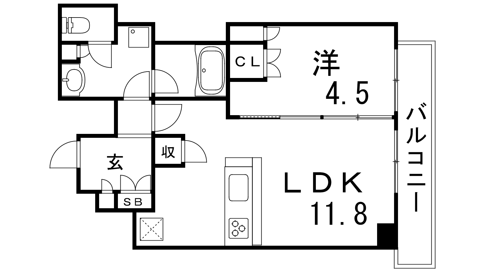 - LDK11.8帖、洋室4.5帖