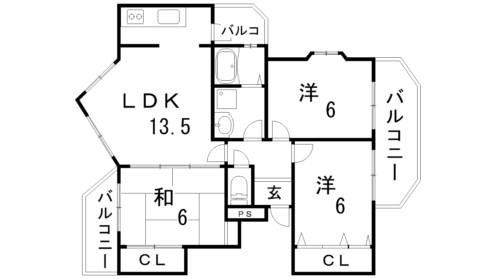 - LDK13.5帖、和室6帖、洋室5帖、洋室6帖