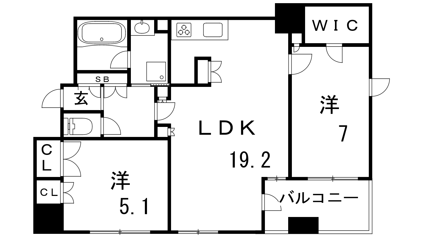 - LDK19.2帖、洋室7帖、洋室5.1帖