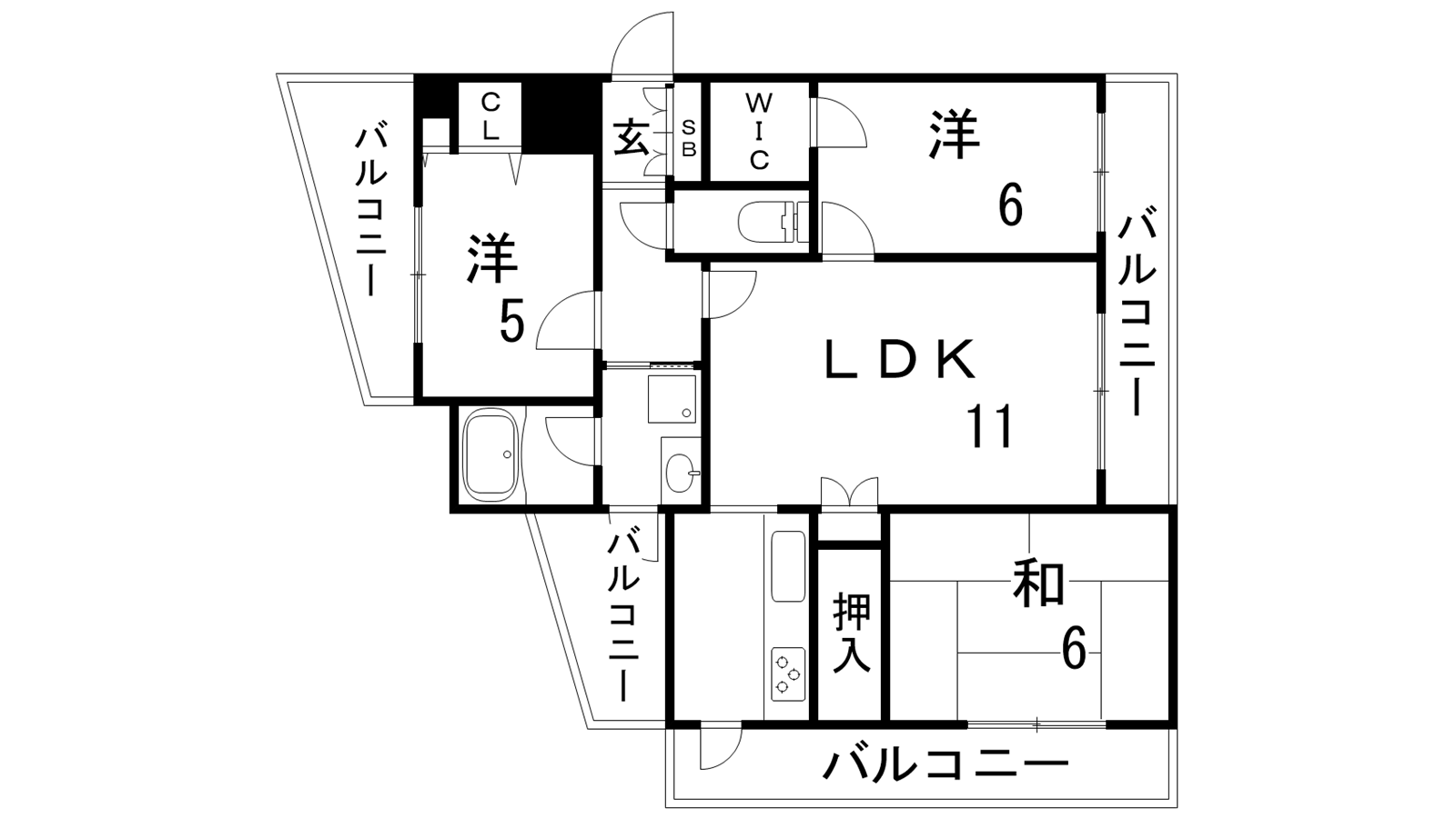- LDK11帖、洋室5帖、洋室6帖、和室6帖